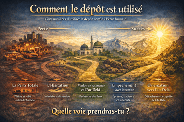 Dans ces cas, le dépôt ne peut être investi par l’action, mais il demeure vivant par l’intention, la patience et la confiance. Allah connaît les empêchements, les cœurs et les efforts silencieux ; Il ne charge aucune âme au-delà de sa capacité.