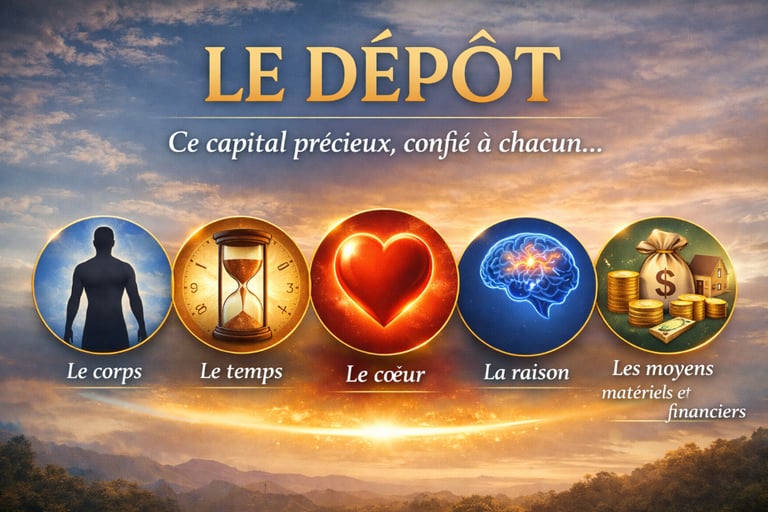 Ce que l’être humain reçoit comme dépôt se compose de cinq éléments essentiels, organisés selon leur importance réelle :